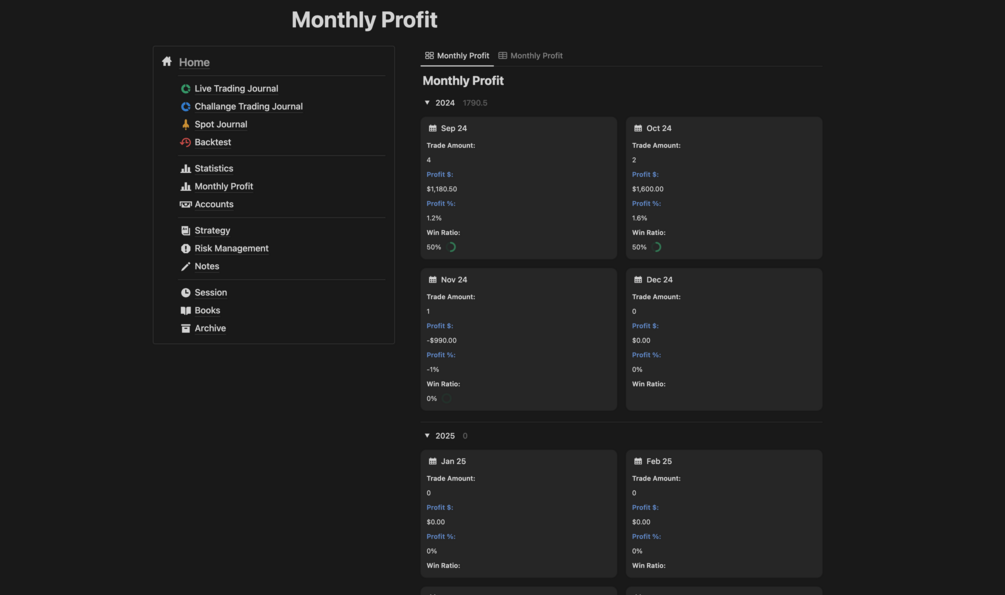 This trading workspace helps you reach new heights in trading with its user-friendly interface and powerful tools for collecting and analyzing statistics. All the data you input is automatically displayed in clear charts, allowing you to instantly assess results and make more informed decisions.